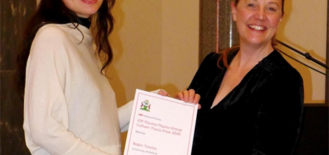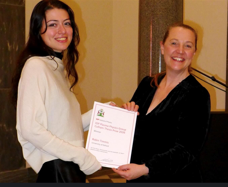 The UK Atomic Energy Authority (UKAEA) and Institute of Physics are proud to announce the award of the Culham Thesis Prize: Plasma Physics Group. The 2026 award goes to Dr Robin Timmis, University of Oxford, for her thesis, 'Attoseconds and the exascale: on laser-plasma surface interactions'.