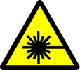- Basic explanatory information combined with the laser hazard warning triangle (black star-burst on yellow background);