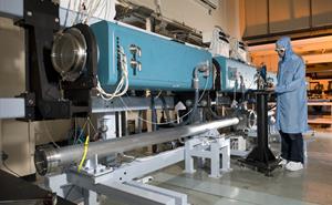 The Vulcan laser can amplify a laser pulse to hundreds of Joules of energy. The laser amplifier chain is formed by a set of rod amplifiers and disc amplifiers.